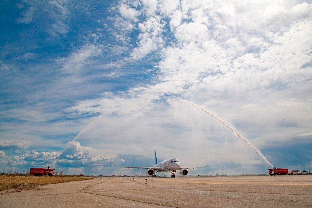 Aviastar-Tu cargo airline became the first customer of the refueling company in Yakutsk. To commemorate the first Aerofuels refueling the airport of Yakutsk Aircraft Rescue and Fire Fighting (ARFF) greeted TU-204 with a water arc. They used 3 tons of water for greeting. The international tradition to pass the airplane through a water arc relates to remarkable events and that which is going on for the first time.